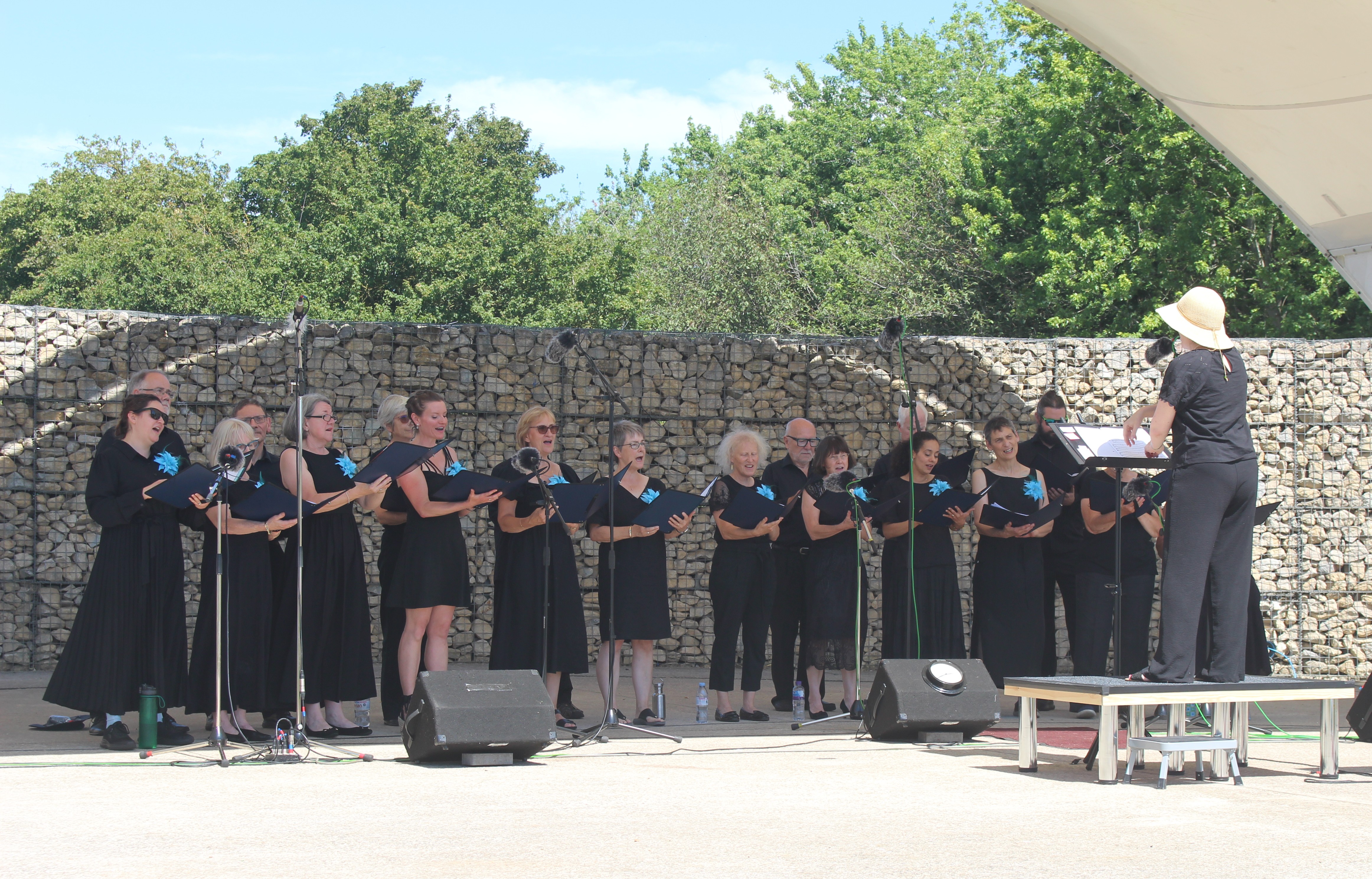 June 1st: Despite unseasonable chilly temperatures, we enjoyed singing in the Milton Keynes Community choir festival including joining together to sing 'With courage' with multiple choirs.